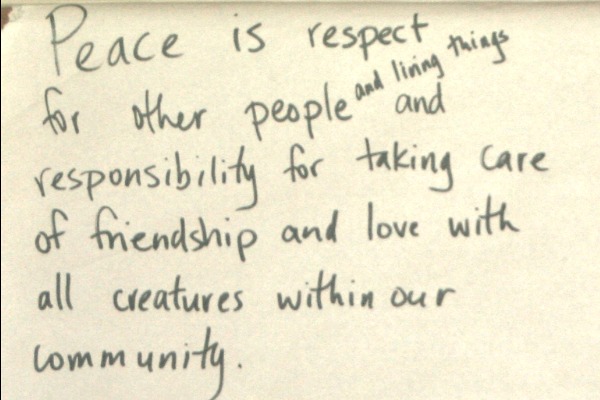 As we often do, we are choosing to use this day to play, celebrate and learn at the same time. Students are divided into small groups – all ages together – to engage in a series of co-operative games, art, drama, and discussion activities. They learn the way of Peace through doing and sharing, discovering the joy of working together in harmony.
