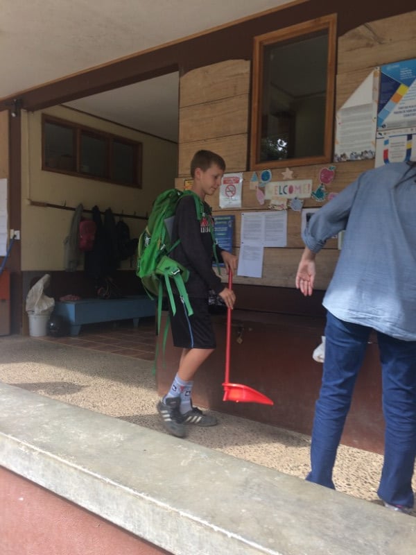 But with the 11/12 class in Panama for their class trip, the grade 5/6 class nobly stepped forward to take the lead.  Everyone pitched in to make up for the missing students, and our campus sparkled as always. The 5/6 students were justifiably proud of themselves for taking a leadership role – thank you teacher Amy for spotting that opportunity to let your students shine (literally!)