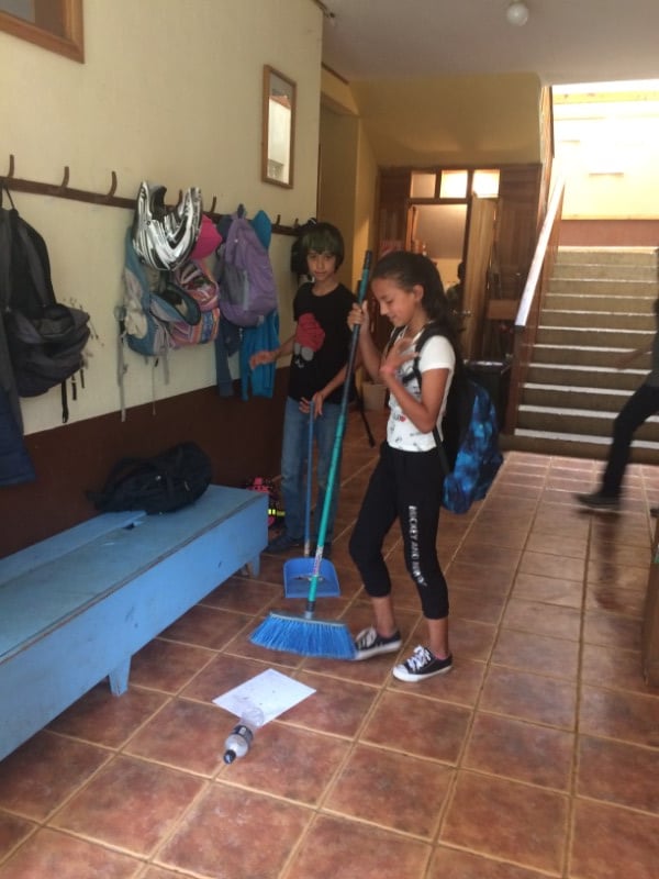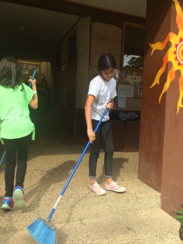 Limpieza – end-of day clean-up – is one of many beautiful traditions at MFS.  The whole school pitches in to take care of our campus, from sweeping the meeting floor to scrubbing toilets.  It’s a powerful lesson in stewardship and teamwork, and also an opportunity to practice leadership.