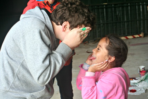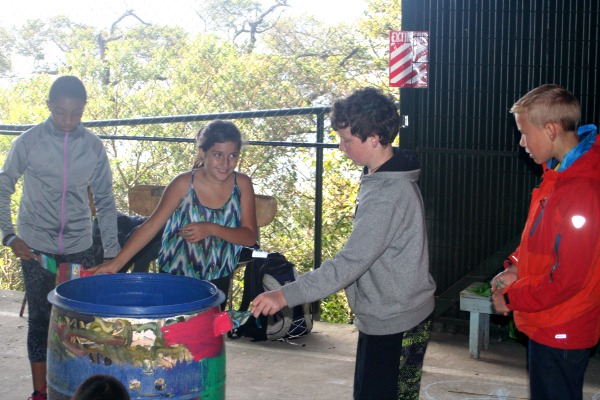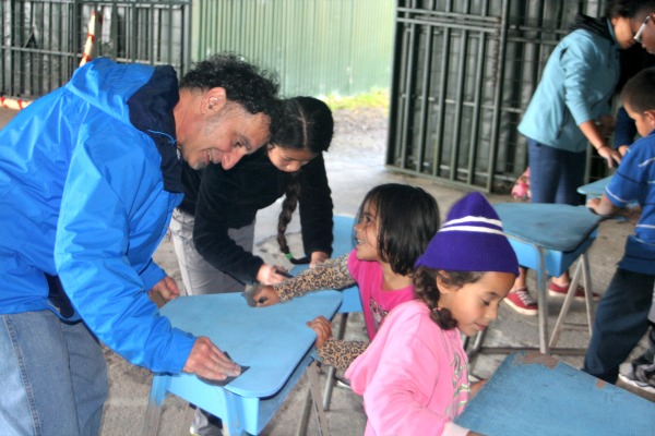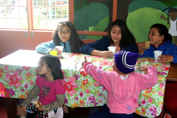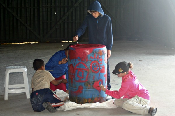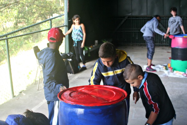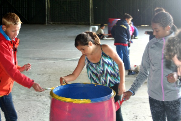 Together, the children helped prep for the new public school year (which starts in February in Costa Rica – at MFS we choose to follow the American calendar of August-June).  Desks were sanded and re-painted, rainbarrels painted for garbage and recycling, and walls scrubbed and painted.  And of course, soccer and playground games were played.  San Luis parents provided a delicious snack, including hot sugar cane juice.