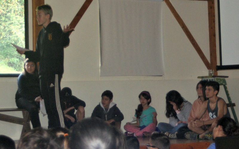 Our celebration this year lasted almost all morning.  Carlos and Laura explained the history and importance of the abolition.  We sang songs of Peace (including the perennial favorite “Turn the World Around”).  Then they broke into 7 groups, led by grade 12 students.  Each group was given a different conflict situation (stealing a snack, coming late to class…), and developed a skit of a bad way then a good way to deal with it.