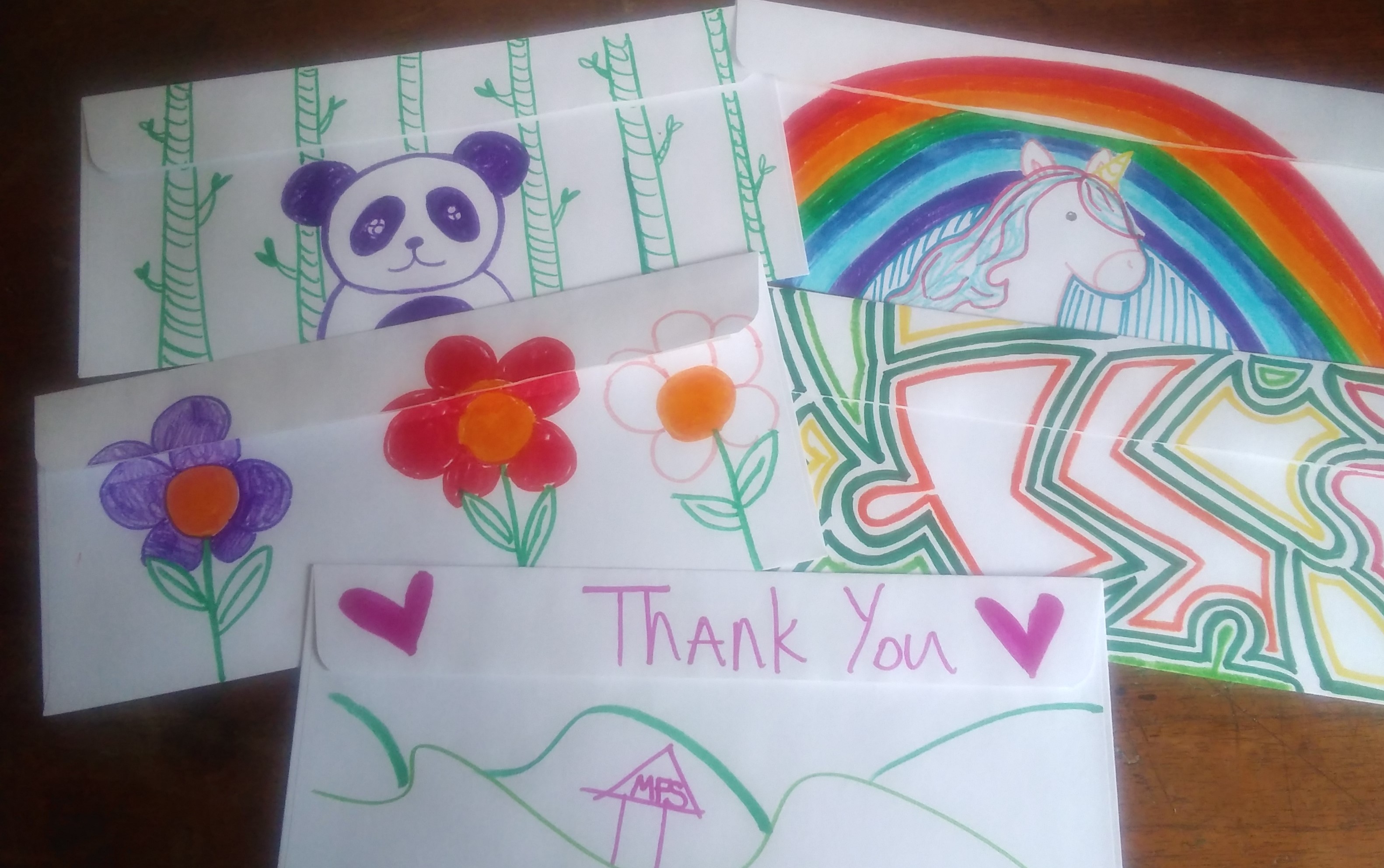 Art from MFS is not limited to the Monteverde community! In the next couple of weeks, school supporters all over the United States and Canada will open their mailboxes to colorful envelopes containing our annual appeal letter. We delight in the trail of smiles along the way, from those preparing the letters to those delivering and receiving them and are deeply grateful to recipients who donate so that we can continue our work. One of our recipients ever dedicated a blog to the envelopes and what the school means to him and Bear Creek Friends eeting in Iowa!