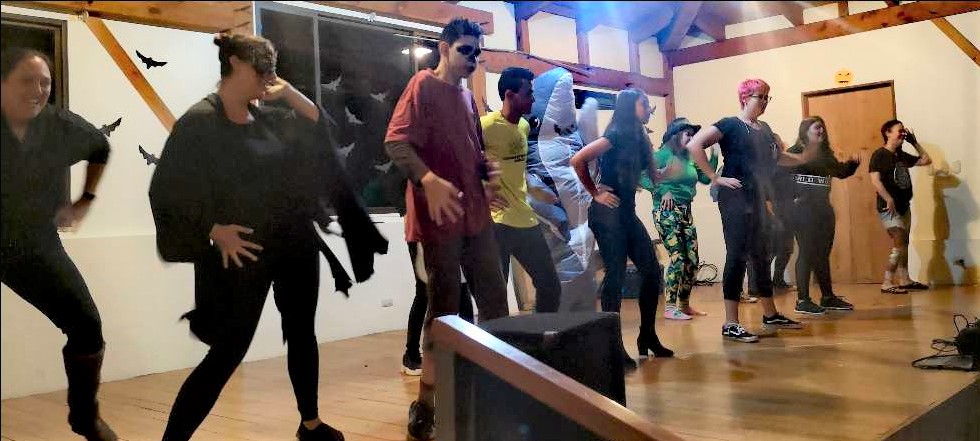 In terms of performing arts, high school students organize a coffee house a few times per semester. They provide the refreshments, serve as emcees and often contribute their musical talents.  Anyone can sign up to perform, whether affiliated with MFS or not. It has become a special – and free! – night out for many from Monteverde and beyond. Most recently, the coffee house coincided with Halloween and the range of creative costumes was amazing!