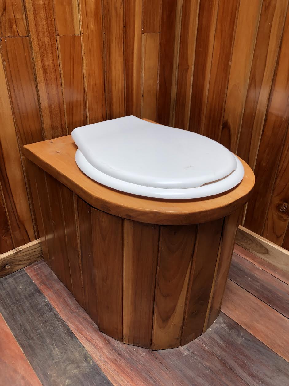 A composting toilet is not a latrine. Waste is caught in a barrel from which the urine is drained to a leach field and the solids are composted with sawdust.  A solar ventilator keeps the air fresh and a plastic bottle with sugar water traps flies on the barrel.