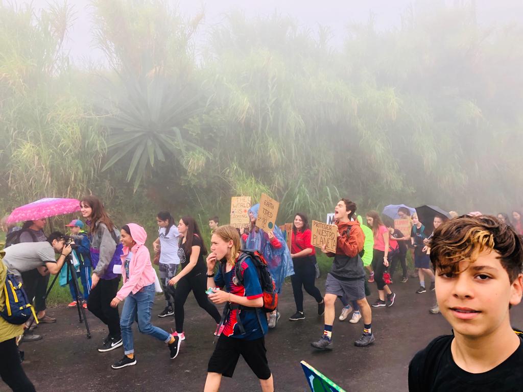 A march with 500 people may not seem like a lot, but when that’s 500 out of a local population of 6,000, that’s a big deal! And MFS had a major hand in responding locally to Greta Thunberg’s call for a People’s Climate March, along with other area schools. True to living in the rainforest, they marched through clouds!
